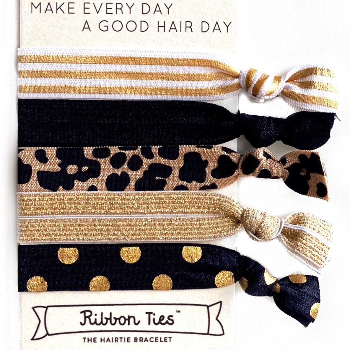RibbonTies are handmade from a soft and stretchy elastic that provide a comfortable, all day hold. Our hair ties are kind on your hair and cute on your wrist and are a great accessory for your fashion ensemble.