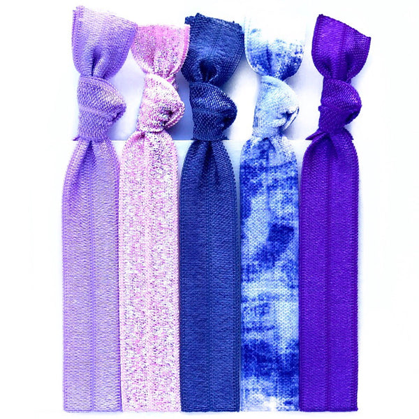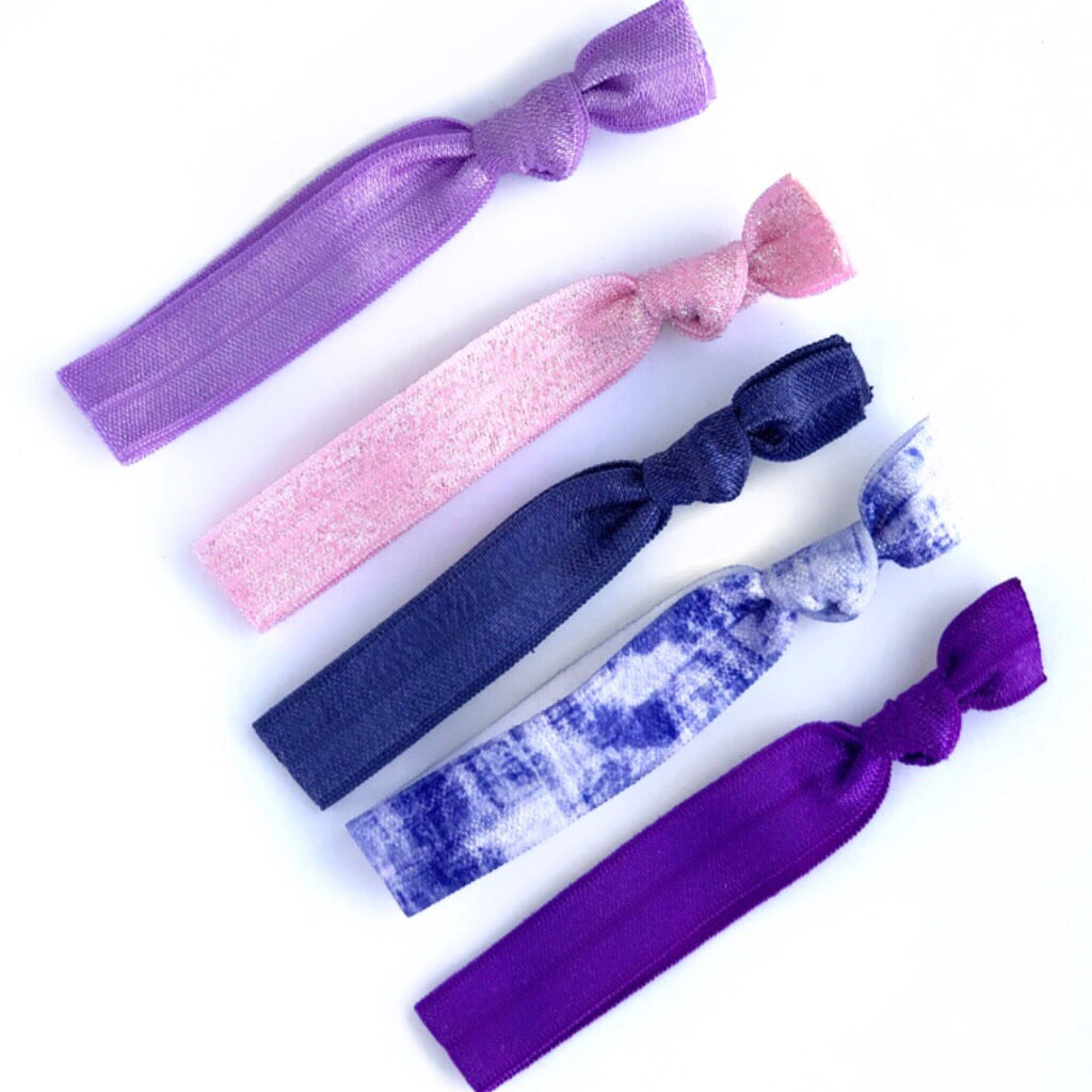 5 knotted elastic hair ties.