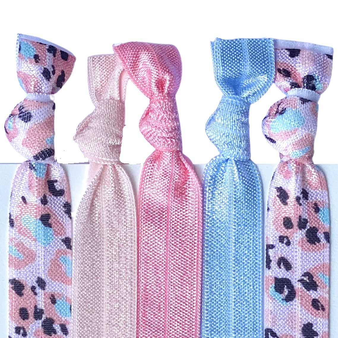5 knotted elastic hair ties.
