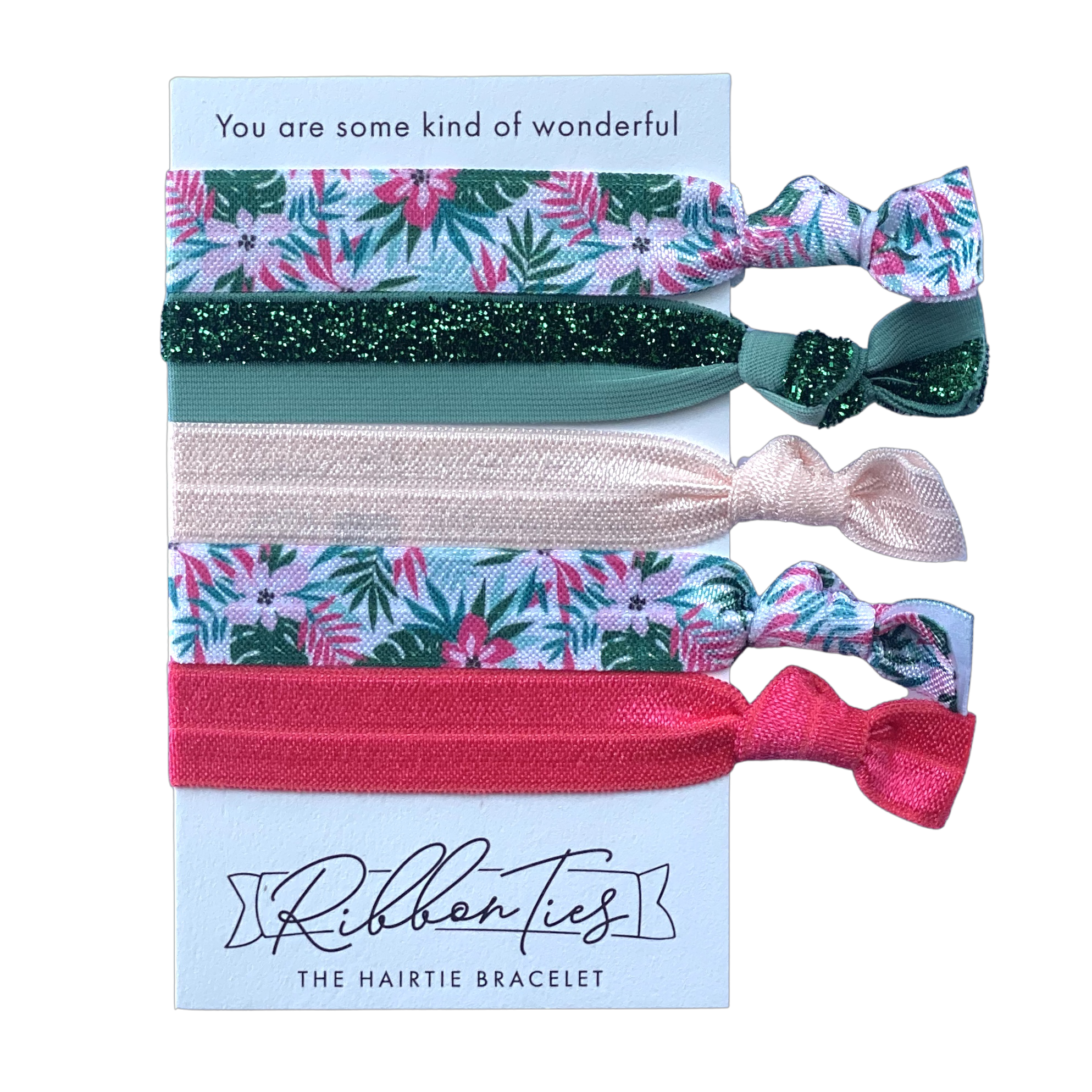 RibbonTies are handmade from a soft and stretchy elastic that provide a comfortable, all day hold. Our hair ties are kind on your hair and cute on your wrist and are a great accessory for your fashion ensemble.