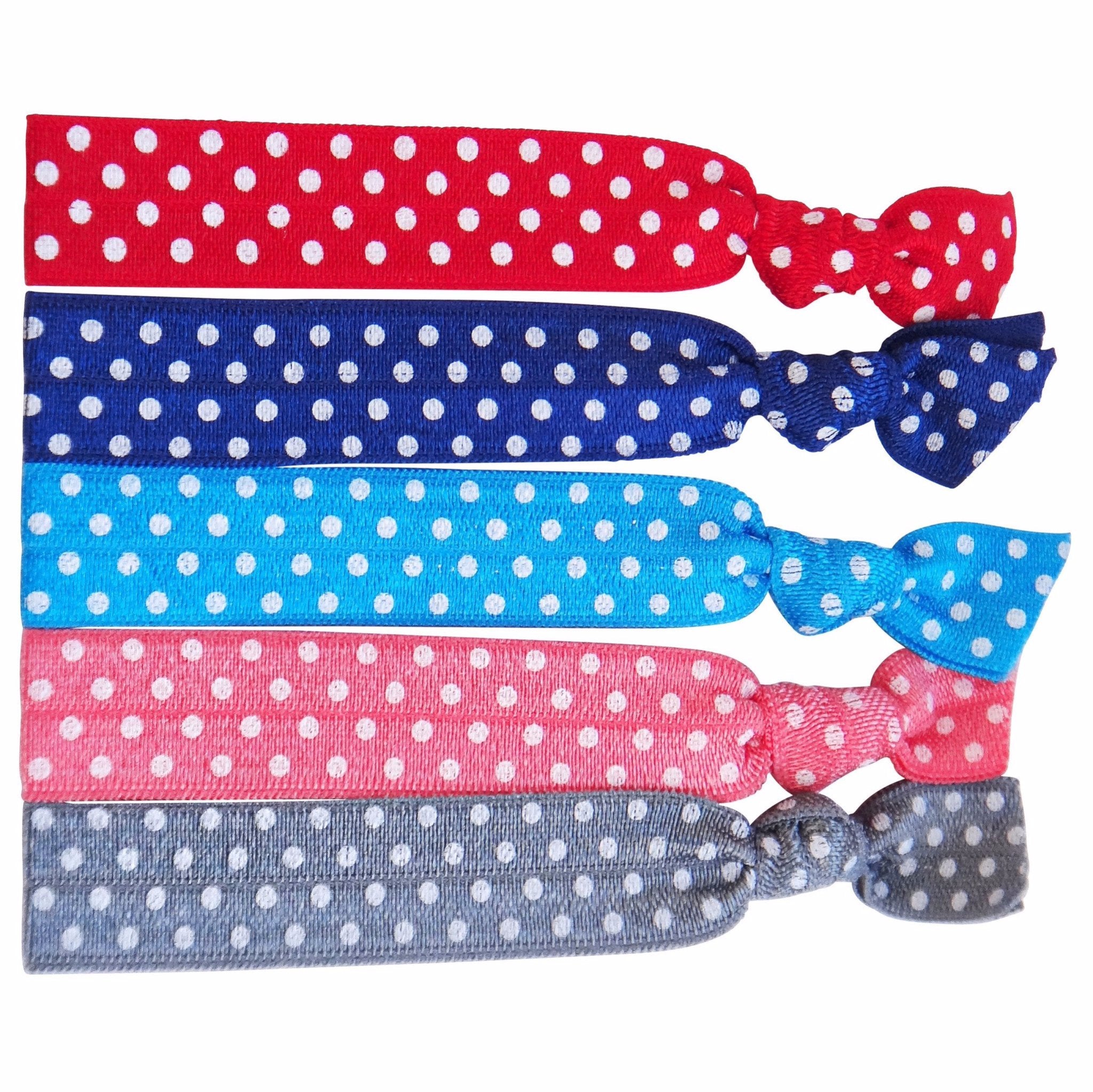 5 knotted elastic hair ties.