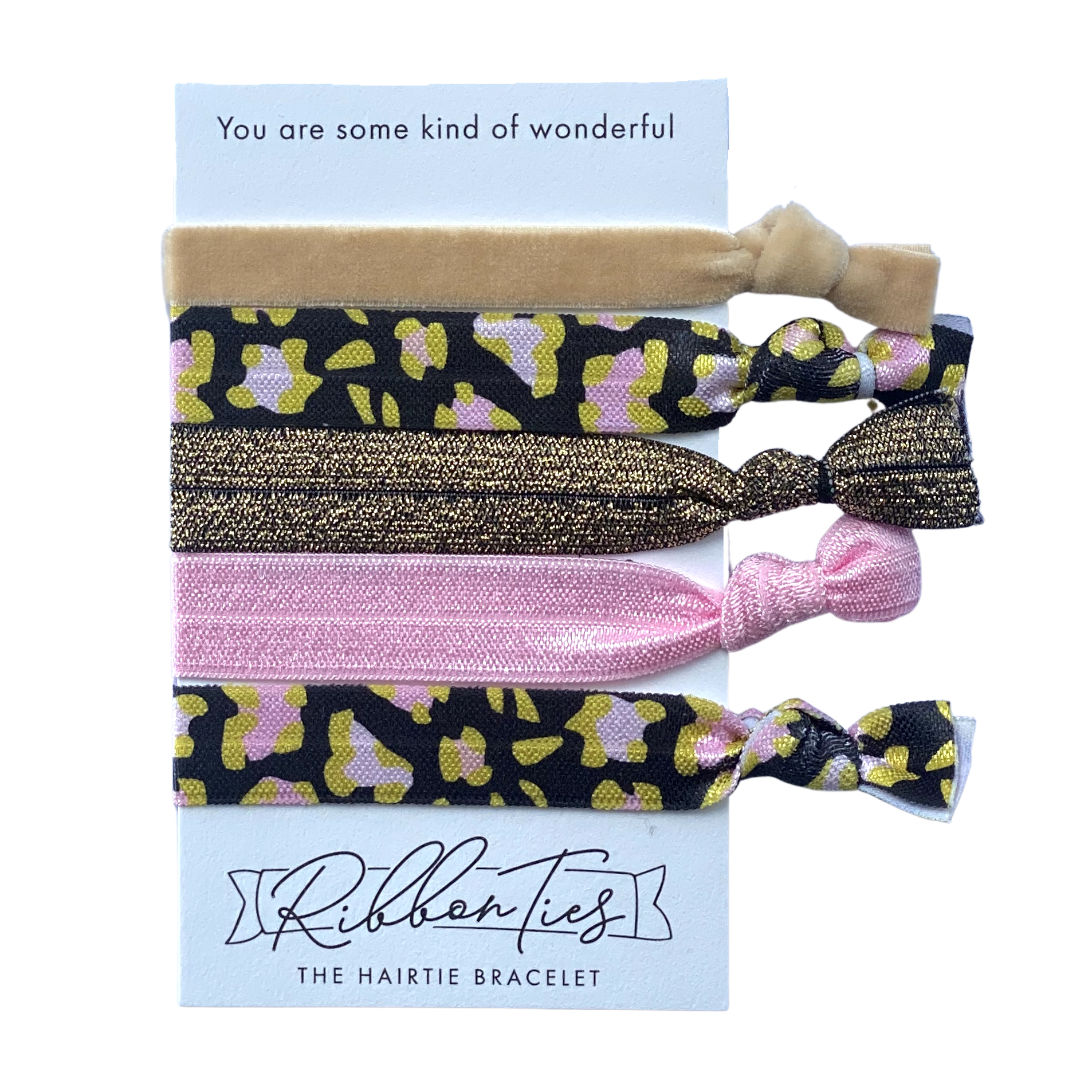 RibbonTies are handmade from a soft and stretchy elastic that provide a comfortable, all day hold. Our hair ties are kind on your hair and cute on your wrist and are a great accessory for your fashion ensemble.